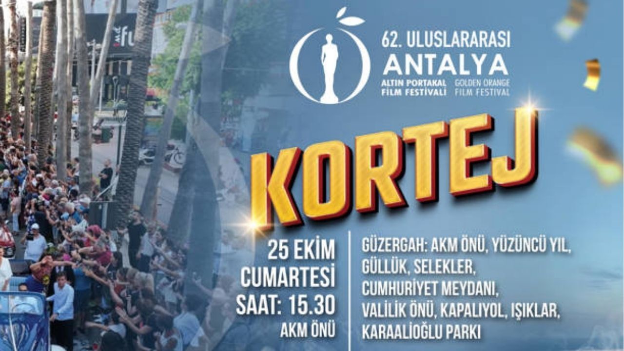 Altın Portakal Film Festivali, sanatçı ve oyuncuların halkla buluştuğu 'Geleneksel kortej geçişi’ ile başlayacak. Sinema dünyasının tanınmış ve usta sanatçıları, 25 Ekim saat 15:30’da kortej geçişi ile bir kez daha Antalyalılarla bir araya gelecek. Kortej, Atatürk Kültür Merkezi (AKM) önünden hareket edecek. Sırasıyla Yüzüncü Yıl, Güllük, Selekler, Cumhuriyet Meydanı, Valilik önü ve Işıklar Caddesi’ne, uğradıktan sonra Karaalioğlu Parkı’nda sona erecek.