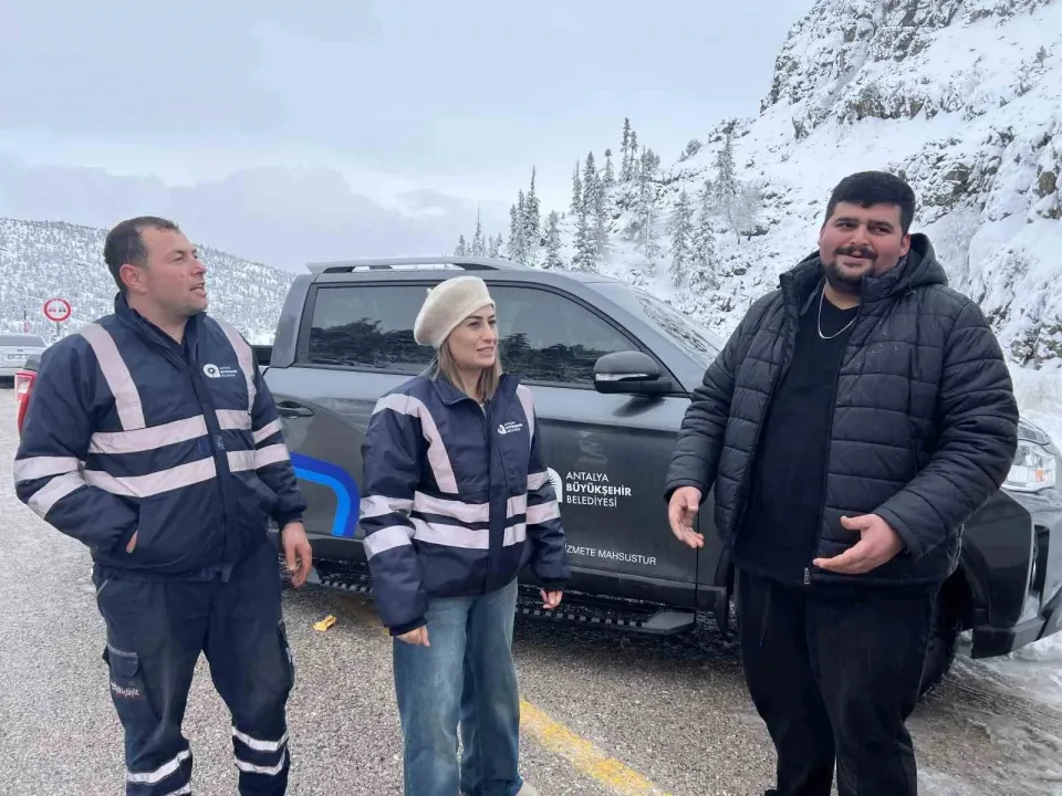 Kar yağışının etkili olduğu Akseki ilçesinde ise yayla yolunda kar ve buzlanmadan dolayı mahsur kalan vatandaşlar kurtarıldı. İhbar üzerine yola çıkan Antalya Büyükşehir Belediyesi Yol Yapım, Bakım ve Onarım Dairesi Başkanlığı Akseki Ekipleri, Alacabel Mevkii Sülek Yayla yolunda kar ve buzlanmadan dolayı mahsur kalan 4 vatandaşa ulaştı. Büyükşehir Belediyesi ekipleri yol açma çalışması yaparak aracı bulunduğu yerden kurtardı. Yoğun kar yağışı ve tipi nedeniyle araçlarının mahsur kaldığı ve yardım istediklerini belirten vatandaşlar Antalya Büyükşehir Belediyesi ve kurtarma ekibine teşekkür etti.
