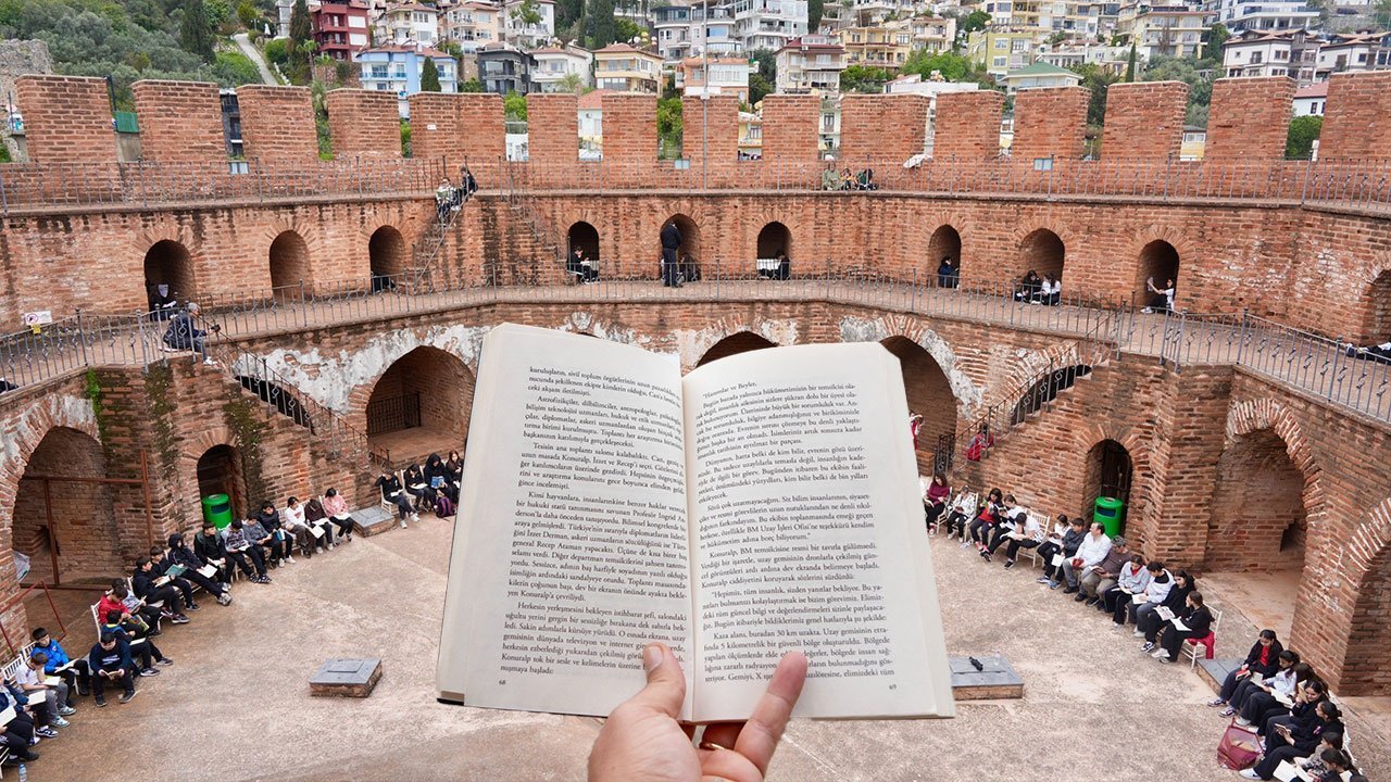 Antalya'nın Alanya ilçesinde 62. Kütüphane Haftası etkinlikleri kapsamında gerçekleştirilen “Açık Havada Kitap Okuma Etkinliği”, Kızılkule’nin 800. yılına özel anlam kazandı. Tarihi atmosferde bir araya gelen öğrenciler, kitap okuma alışkanlığına dikkat çekti.