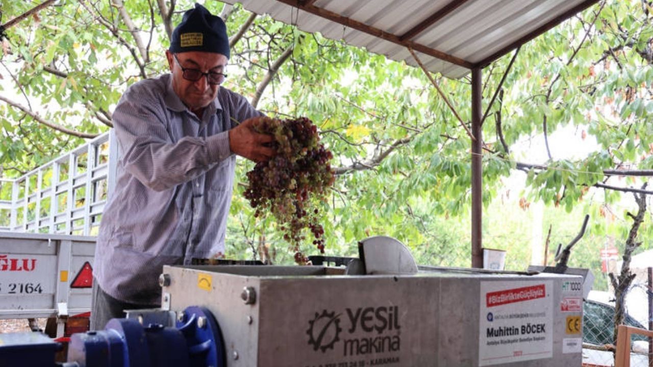 Elmalı Yuva Mahallesinde üzüm sıkma makinesini kullanan Mahmut Karakaya isimli üretici, Büyükşehir Belediyesi’nin sağladığı hibe destekleri için memnuniyetini şu sözlerle dile getirdi: