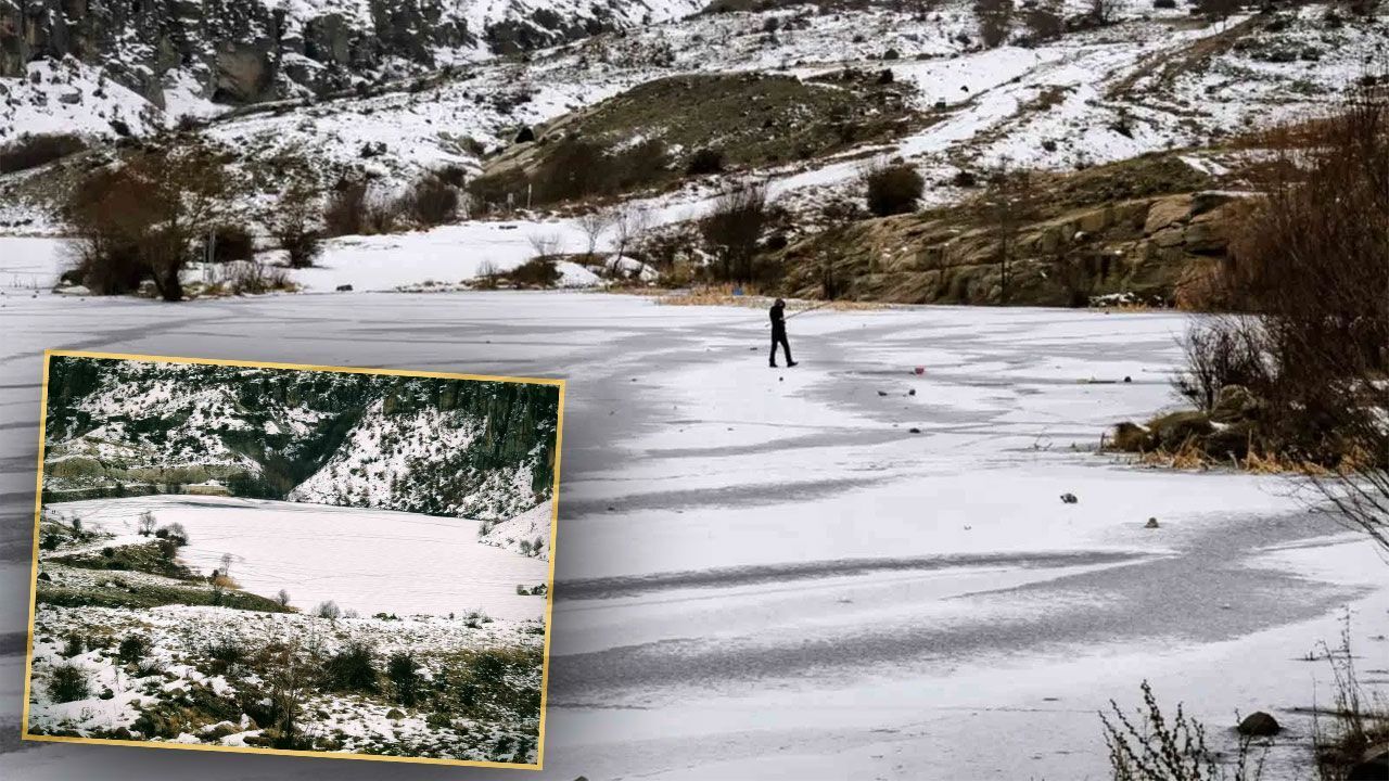 Konya- Antalya kara yolu üzerindeki Bulumya Göleti, bir haftadır devam eden aşırı soğuklar nedeniyle tamamen donarak buz tuttu. Bin 515 rakımda ve Erenkaya kanyonu içinde yer alan göletin çevresi ise 15 santimetre karla kaplandı.