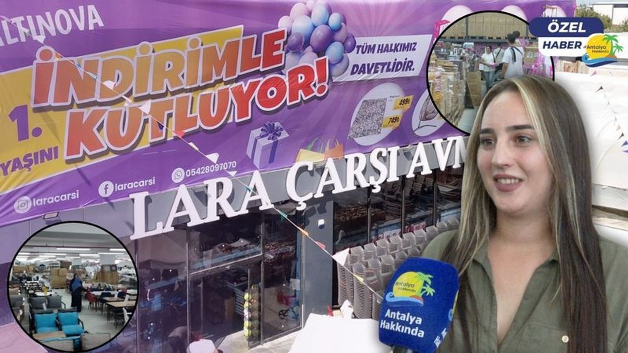 Antalya'da 2014'ten beri hizmet veren Lara Çarşı AVM, 12 şubesi ile zücaciyeden başlayarak birçok kategoride hizmet vermeye devam ediyor. Lara Çarşı AVM'nin en büyük şubesi olan Altınova şubesi 1'inci yılını büyük indirimlerle kutluyor. Antalyalılara hizmet sunan AVM, indirimlerle dikkat çekiyor.