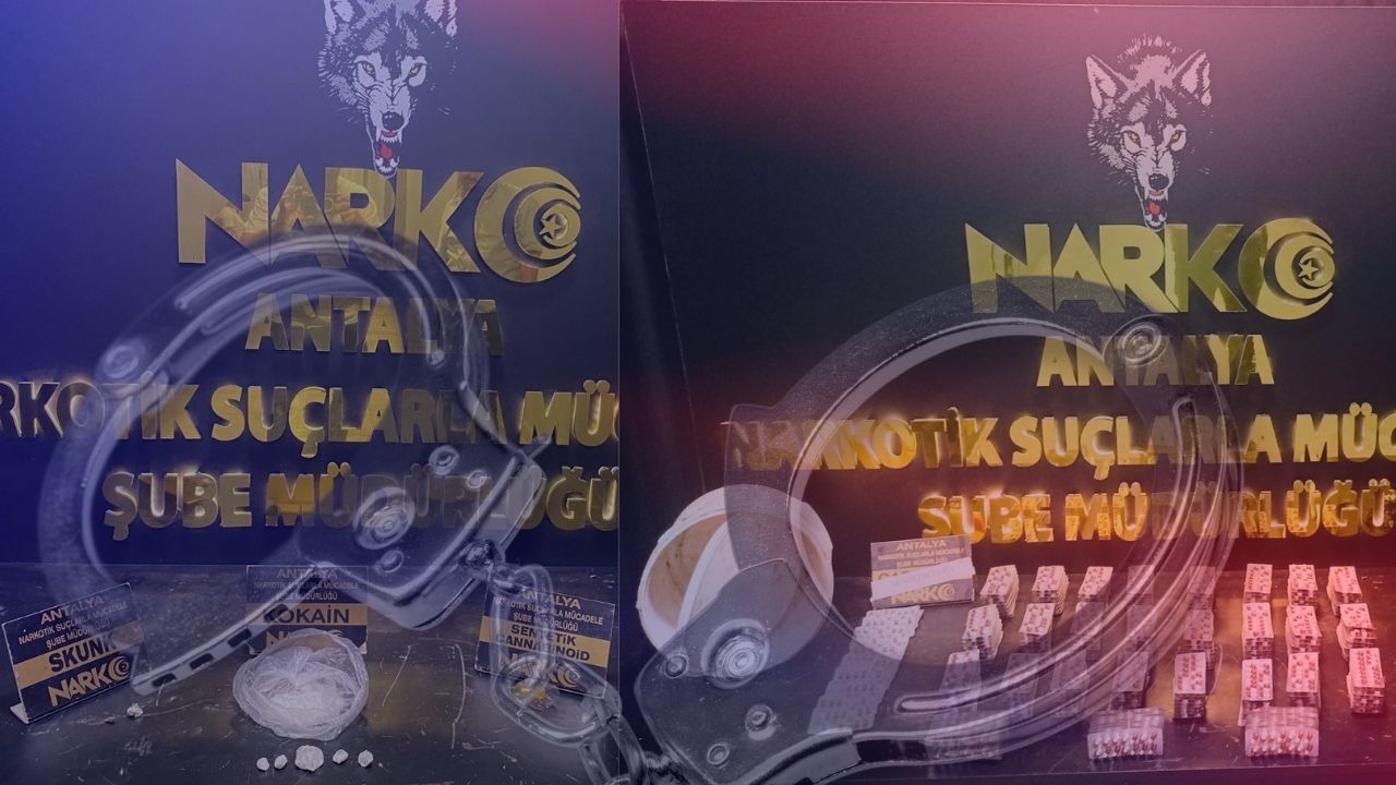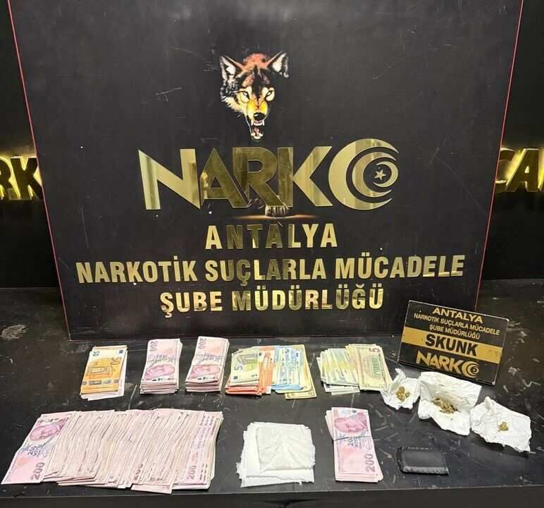 Yapılan çalışmalarda, 4 kilo 697 gram esrar, 25,80 gram 230 adet, (yaklaşık 457 bin 520 kullanımlık) sentetik kannabinoid (A4), 91 gram metamfetamin, 104 gram kokain, 3 bin 571 adet sentetik ecza, 13 gram eroin, 2 gram skunk, 3 kök kenevir bitkisi, 5 adet hassas terazi ile suçtan elde edildiği değerlendirilen bir miktar döviz ve Türk Lirası ele geçirildi.