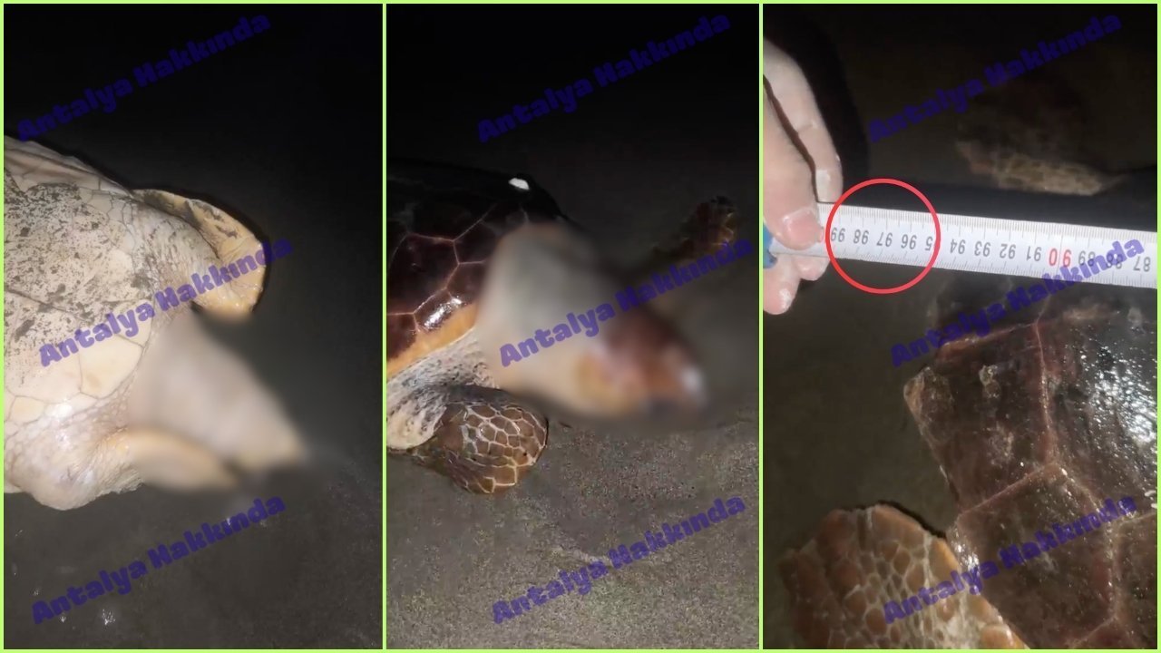 Sahilde yürüyüş yapan vatandaşlar tarafından bulunan dev kaplumbağanın hareketsiz olduğu görüldü. Cansız şekilde kıyıda duran caretta carettanın devasa boyutu dikkat çekerken, vatandaşlar yanlarında getirdikleri metre ile kaplumbağanın boyunu ölçtü. Yapılan ölçümde kaplumbağanın boyunun tam tamına 97 santimetre olduğu belirlendi.