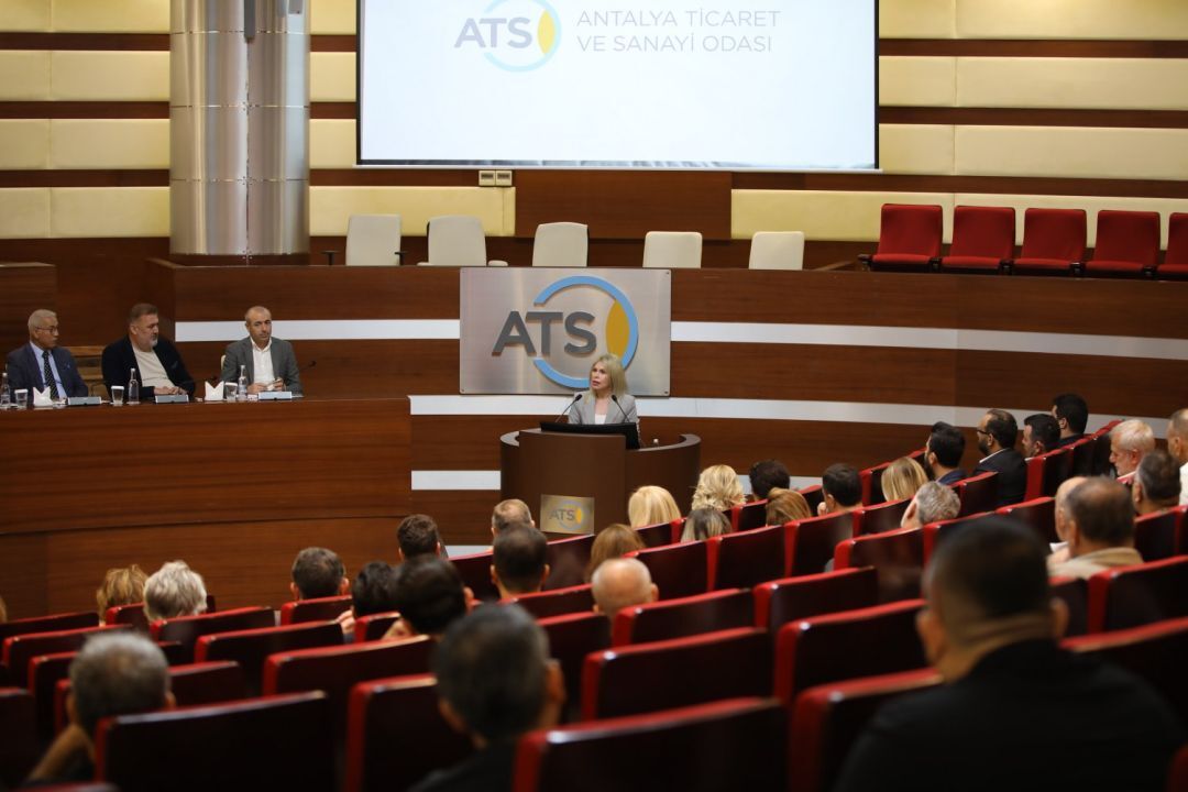 ATSO Meclis Başkanı Ahmet Öztürk’ün başkanlığındaki toplantıda konuşan Akdeniz Üniversitesi Rektörü Prof. Dr. Özlenen Özkan,
