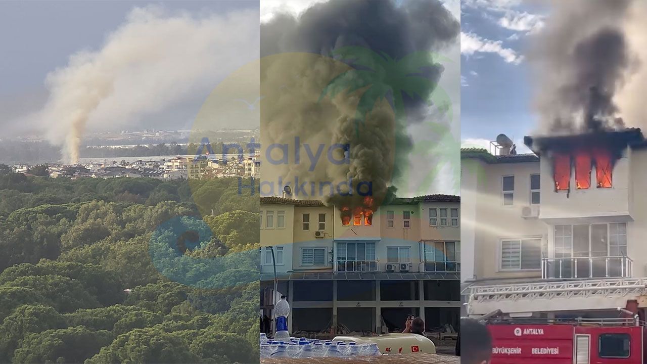 Antalya’nın Serik ilçesine bağlı Belek turizm merkezinde iddiaya göre bir eve yıldırım düşmesi sonucu yangın çıktı. Yangından yükselen yoğun dumanlar gökyüzünü kaplarken, çevrede büyük panik yaşandı. İhbar üzerine bölgeye çok sayıda itfaiye, polis ve sağlık ekibi sevk edildi.