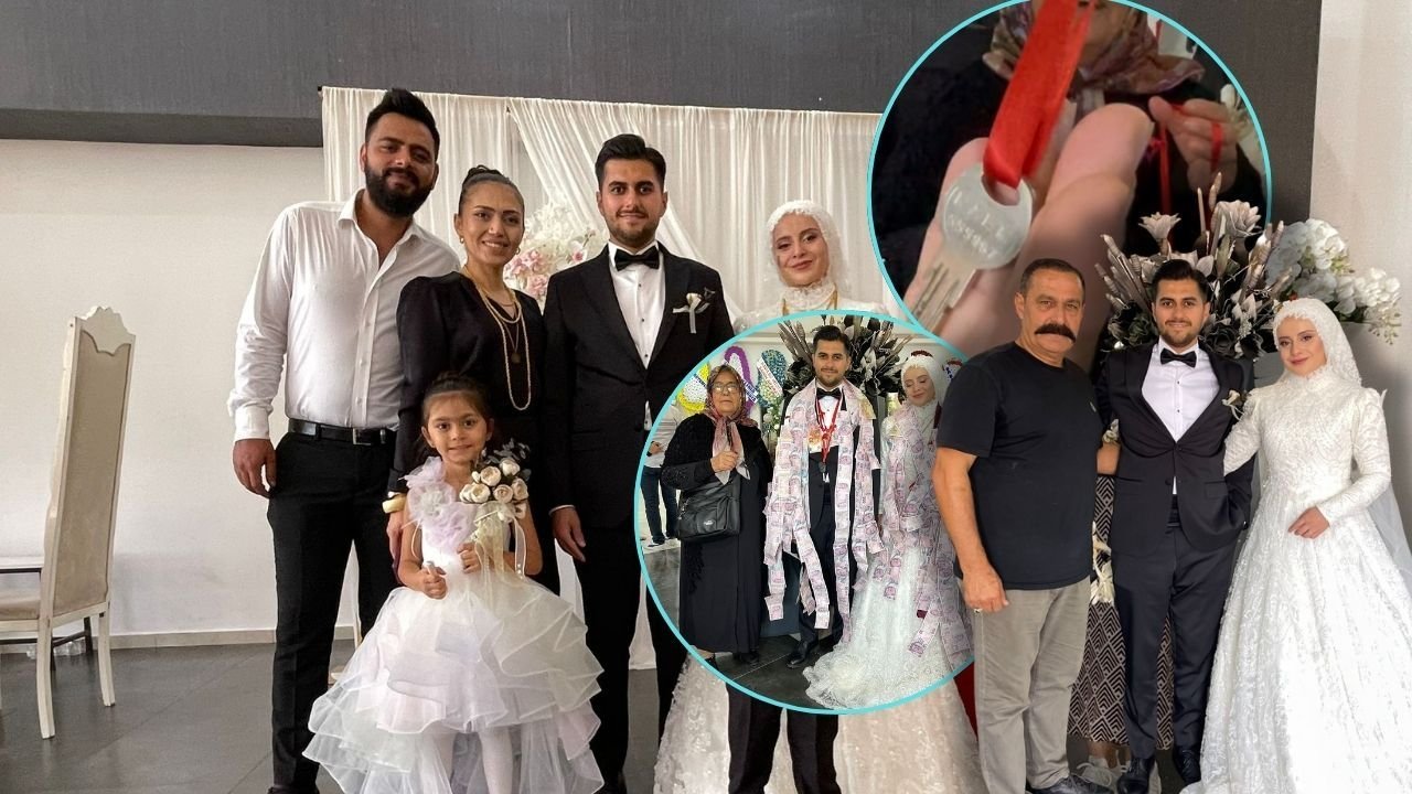 Ev ve araç anahtarını babaanne Emine Arslan ile birlikte Hüseyin Arslan’a takan damadın kuzeni Fuat Sönmez,