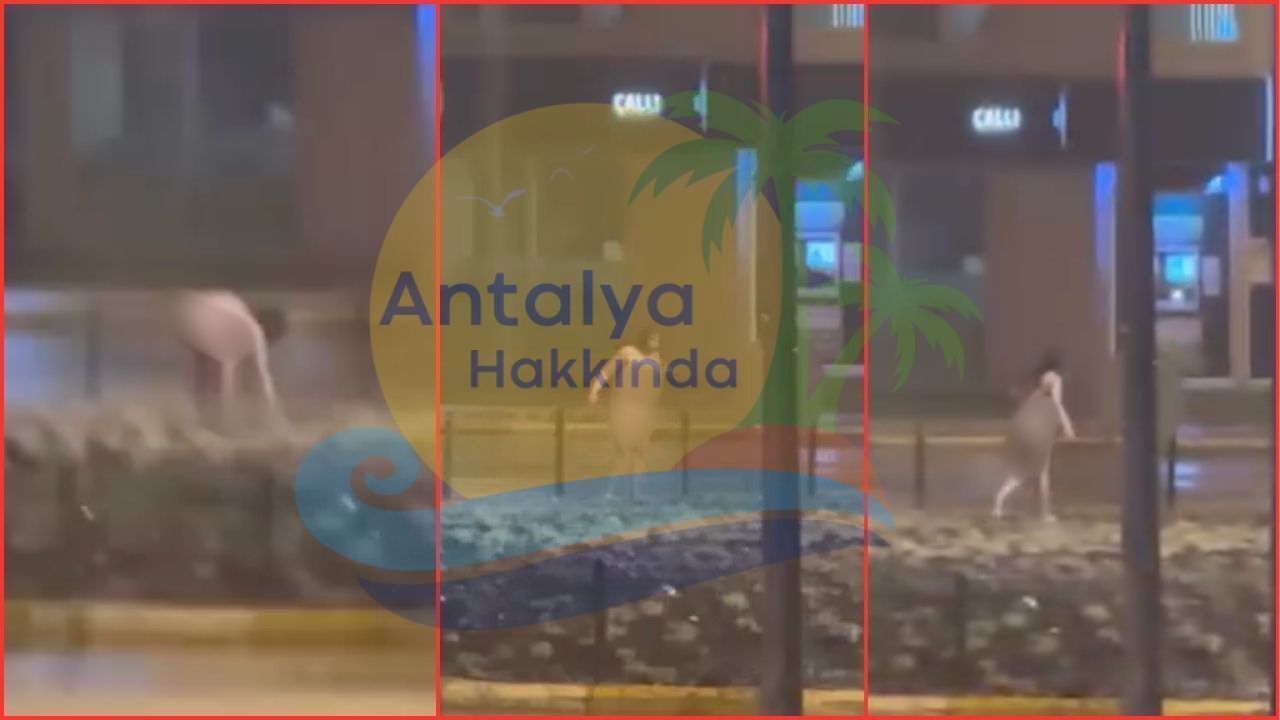Olay, dün akşam saatlerinde Antalya’da meydana geldi. Kentte etkili olan sağanak yağış sırasında bir kadın, Çallı Üst Geçidi altında üzerinde kıyafetler olmadan koşarken ve yürürken görüntülendi. Yağmura rağmen cadde üzerinde hareket eden kadın, çevrede bulunan vatandaşların dikkatini çekti.