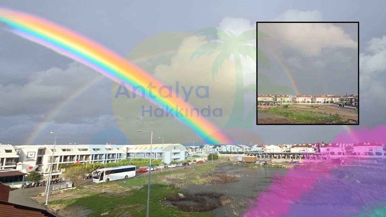 Haftalardır yağışların etkili olduğu Antalya'da, gökyüzü vatandaşlara renkli bir manzara sundu . Serik ilçesine bağlı Belek turizm bölgesinde bir vatandaş, gökyüzünde arka arkaya oluşan çift gökkuşağını cep telefonu kamerasıyla kaydetti.