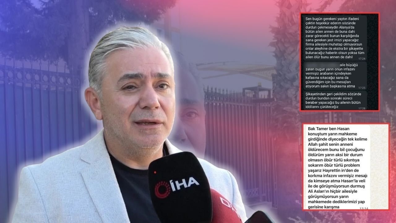 "Cinayetin işlendiği şirketin sahibiyim. Mahkemeden önce bilmediğim bir numaradan tehdit mesajları aldım. Hayrettin Sunbat’tan korkmamam gerektiği, onunla ilgili infaz verildiği bile söylendi. Mahkemede tereddüt ettiğim için şikayetimden vazgeçtim. Şimdi bununla ilgili suç duyurusunda bulunuyorum. Mahkeme öncesi tehdit mesajları, mahkeme sonrası teşekkür mesajları geldi."
