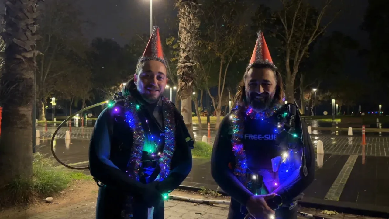 Kılıç, 2025’in tüm dünya için zorlu geçtiğini, su altı mağarasındaki görüntüleriyle insanları gülümsetmek istediklerini söyledi. Konyaaltı falezlerinde suyun altından dalarak çıktıkları hava boşluğu olan mağarada çam ağacı süslediklerini, balonlar patlattıklarını, maytaplar yaktıklarını anlatan Ali Kılıç, 2026’nın tüm dünyaya iyilikler getirmesini dilediklerini kaydetti.