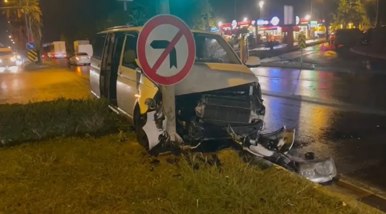 Çarpmanın etkisiyle yavaşlayan minibüse, arkadan gelen diğer tur minibüsü çarpmamak için manevra yaptığı sırada orta refüjdeki direğe çarparak durabildi.