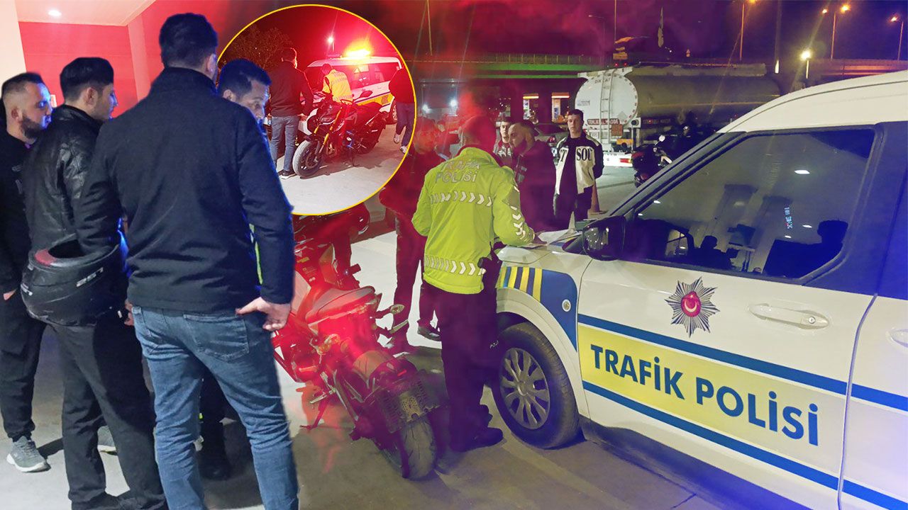 Ekiplerin kontrolleri sırasında motosikletlerden birinin plakasının bulunmadığı belirlendi. Detaylı incelemede ayrıca araçta abartı egzoz bulunduğu da tespit edildi.