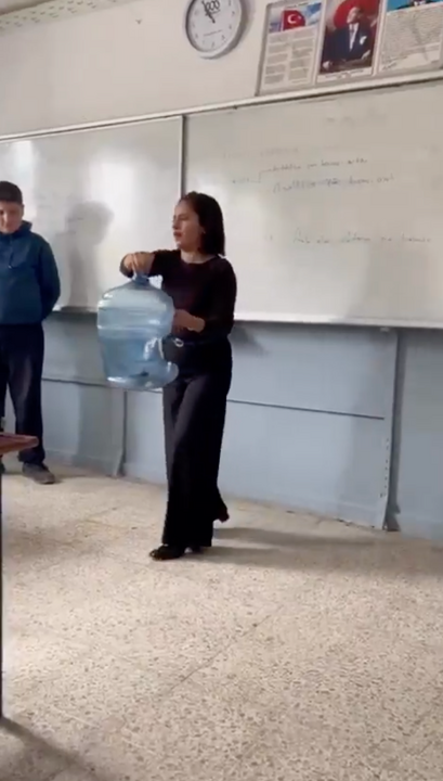 Antalya’nın Manavgat ilçesinde bir ortaokulda görev yapan öğretmen, fizik dersini uygulamalı anlatımıyla farklı bir boyuta taşıdı. Derste öğrencilerine “Damacanayı ellerinizle sıkıştırabilir misiniz?” diye soran öğretmen, sınıfın en güçlü öğrencisini tahtaya kaldırdı. Öğrenci, iki eliyle denemesine rağmen boş damacanayı sıkıştırmayı başaramadı. Bunun üzerine öğretmen, fizik kurallarını devreye sokarak tek eliyle damacanayı nasıl sıkıştırabileceğini gösterdi. Öğretmenin uyguladığı yöntem karşısında öğrenciler büyük şaşkınlık yaşadı.