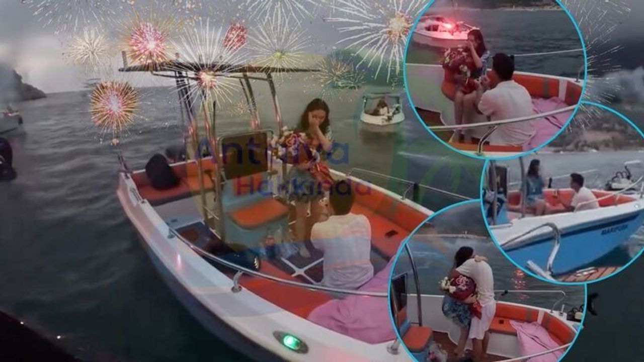 Akşam saatlerine doğru gerçekleşen evlilik teklifi sırasında çevredeki teknelerden çok sayıda meşale yakıldı. Denizin üzerinde büyüleyici bir manzara oluşturan bu anlar, katılanlara adeta festival havası yaşattı. Çiftin romantik anları, izleyenler için de unutulmaz kareler sundu.