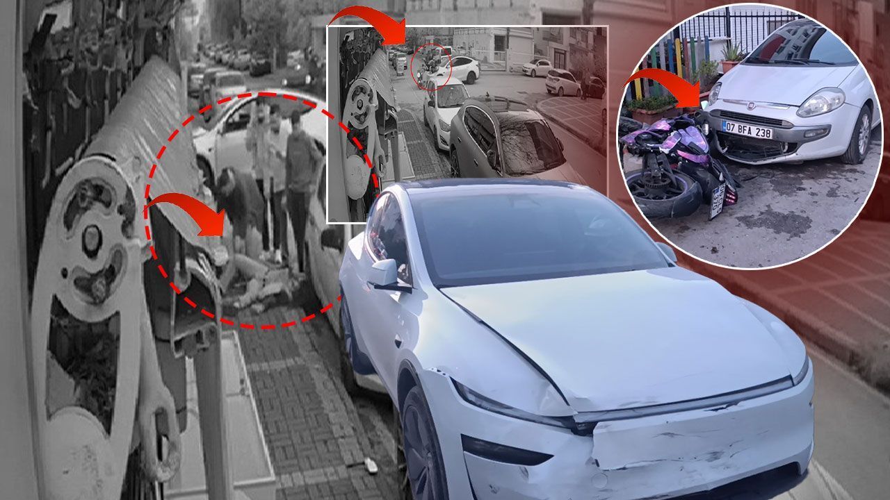 Güvenlik kamerası görüntülerinde, otomobilin çarpmasıyla motosiklet sürücüsü ile motosiklette yolcu olarak bulunan Gamze Y.’nin metrelerce havaya savrulduğu görüldü. Kontrolden çıkan motosiklet, yol kenarında park halinde bulunan 07 BFA 238 plakalı otomobile çarparak durabildi.