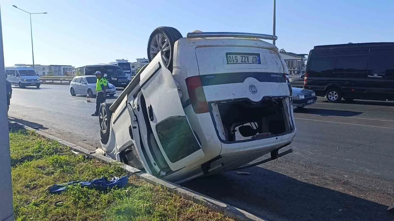 Araç ters döndü