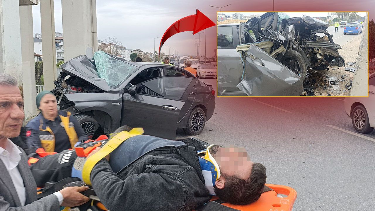 Alanya-Antalya D-400 kara yolunda meydana gelen kazada, yan yoldan çıkan bir araçla çarpışan otomobil savrularak üst geçidin beton ayaklarına çarptı. Kazada araç içinde sıkışan ağır yaralı sürücü, ekiplerin müdahalesiyle çıkarıldı.