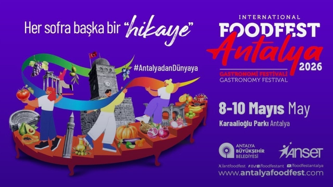 Antalya’nın zengin mutfak kültürünü ve yerel lezzetlerini dünyaya tanıtmayı hedefleyen FoodFest Antalya, 8-10 Mayıs 2026 tarihleri arasında Karaalioğlu Parkı’nda gerçekleştirilecek. Antalya'da gelenekleşen ve bu yıl 5'incisi düzenlenecek olan "Foodfest Antalya", "#AntalyadanDünyaya" etiketiyle düzenlenecek. Heyecanla beklenen festival, şehrin gastronomik mirasını usta şefler ve lezzet tutkunlarıyla buluşturmayı hedefliyor.