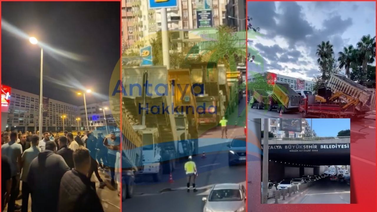 Hafriyatçılar tarafından Antalya Büyükşehir Belediyesi önünde yoğun katılımla gerçekleştirilen eylem nedeniyle trafik kilitlendi. Güllük Alt Geçidi'nden başlayan trafiğin Mevlana Üst Geçidi'ne giden güzergaha kadar devam ettiği görülürken, trafik durma noktasına geldi. O anları cep telefonu kamerasıyla kaydeden vatandaş,