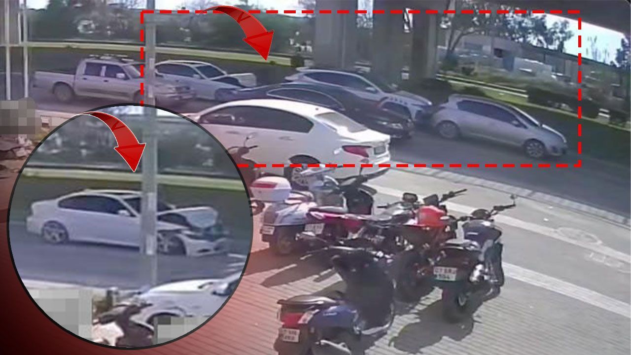 Kazanın ardından jandarma aracına çarpan 07 LU 773 plakalı otomobil, olay yerinde durmadan kaçtı. Güvenlik kamerasına saniye saniyesine yansıyan görüntülerde, çarpan aracın arka koltuğunda oturan bir kişinin araçtan indiği, ardından otomobilin hızla uzaklaştığı görüldü.