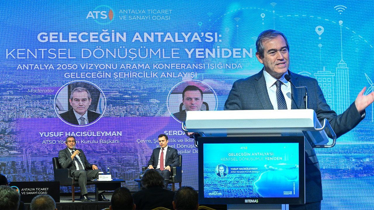 Antalya Ticaret ve Sanayi Odası (ATSO) tarafından düzenlenen "Geleceğin Antalya’sı: Kentsel Dönüşümle Yeniden" paneli, ATSO Yönetim Kurulu Başkanı Yusuf Hacısüleyman’ın ev sahipliğinde gerçekleştirildi. Programda kentsel dönüşümün şehirlerin afetlere karşı dayanıklılığının artırılması, yaşam kalitesinin yükseltilmesi ve sürdürülebilir kentleşme hedeflerine ulaşılması, planlı, bütüncül ve mevzuata uygun şekilde yürütülen dönüşüm uygulamaları ile sosyal, ekonomik ve mekânsal açıdan daha sağlıklı kentlerin inşa edilmesi konuları görüşüldü.