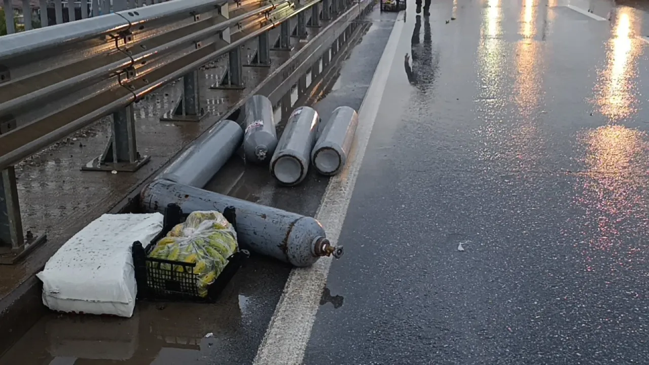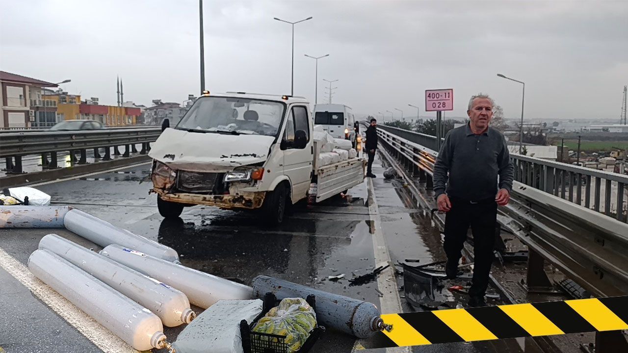 Kamyonette büyük çapta maddi hasar oluşurken, kamyonetin üzerinde bulunan poşet torbaları ve muz sarartma tesislerinde kullanılan çok sayıda etilen gazı tüpü köprülü kavşak üzerinde 100 metrelik alanda yola saçıldı.