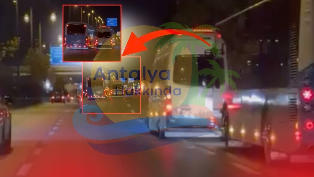 Olay, dün akşam saatlerinde Antalya’nın yoğun güzergahlarından biri olan Gazi Bulvarı üzerinde meydana geldi. Özel halk otobüsü ile servis aracı sürücüsü arasında henüz bilinmeyen bir nedenle tartışma çıktı. Tartışmanın kısa sürede büyümesiyle birlikte sürücüler, akan trafiğin ortasında tehlikeli manevralar yapmaya başladı. O anlar cep telefonu kamerasıyla görüntülendi.