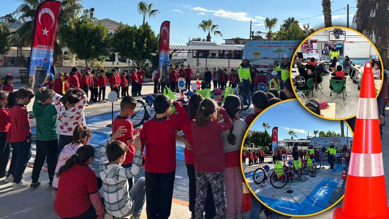 "Antalya İl Jandarma Komutanlığı Trafik Şube Müdürlüğünce, trafik güvenliği bilincinin erken yaşlarda kazandırılması ve öğrencilerin güvenli trafik davranışları konusunda bilinçlendirilmesi amacıyla yürütülen çalışmalar kapsamında, son bir hafta içerisinde il genelindeki okullarda öğrenim gören öğrencilere trafik eğitimi verilmiştir. Jandarma Genel Komutanlığı'nın trafik güvenliğinin sağlanmasına yönelik kararlı yaklaşımı doğrultusunda; öğrencilere yönelik bilgilendirme, farkındalık oluşturma ve güvenli davranış kazandırmaya yönelik eğitim faaliyetlerine aralıksız olarak devam edilecektir."