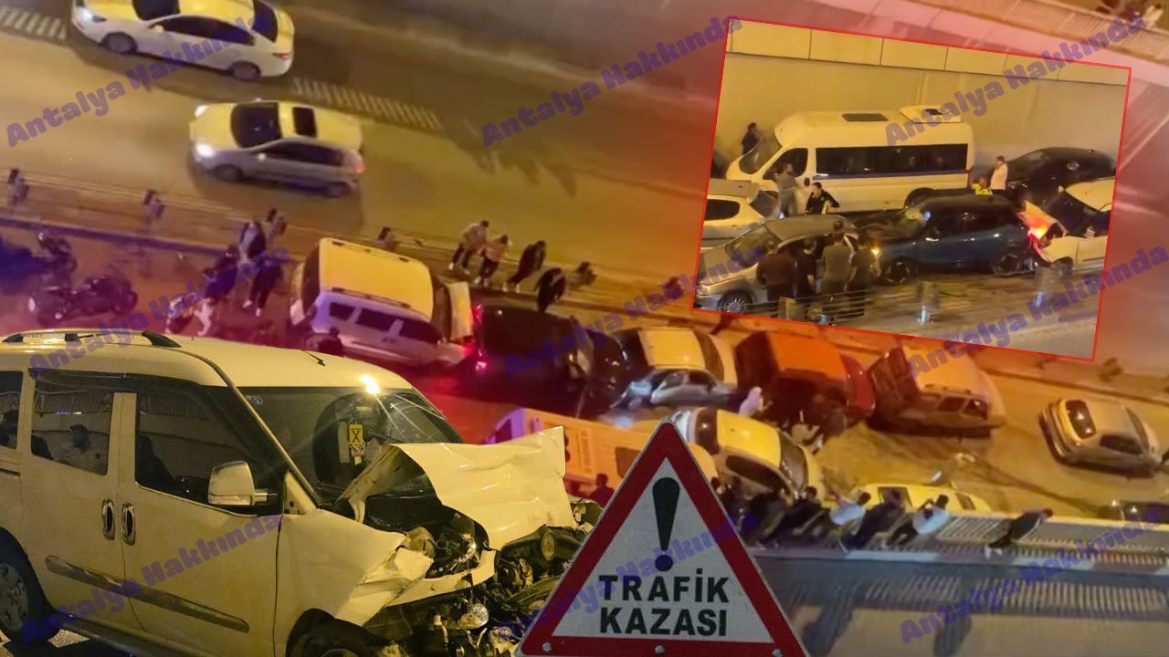 Kaza, Antalya’nın Muratpaşa ilçesine bağlı Yener Ulusoy Bulvarı üzerindeki Şarampol alt geçidinde yaşandı. Alınan bilgilere göre, bölgede devam eden yol çalışması nedeniyle trafikte yavaşlama yaşandı. Bu sırada arkadan gelen bir aracın hızını düşürmemesi sonucu çarpışma meydana geldi ve 11 araç birbirine girdi. Kazaya karışan araç sürücüsü Kahraman D. yaralandı.