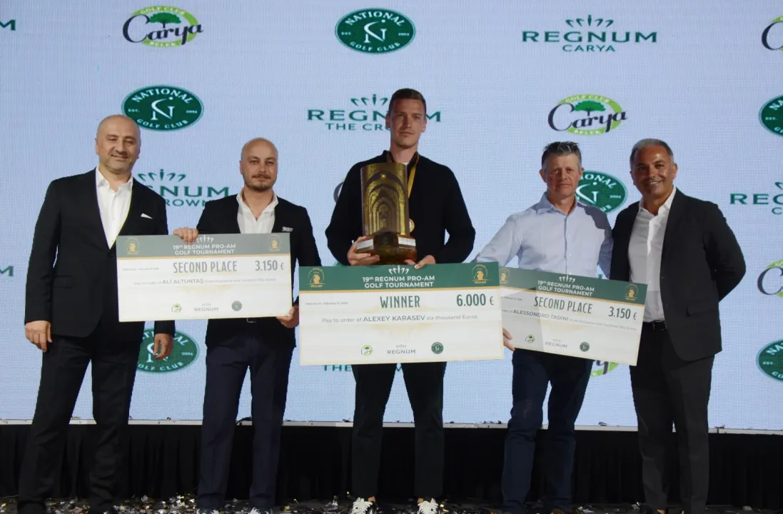 Turnuvada dereceye giren sporculara ödüllerini Regnum Carya Golf Müdürü Hasan Ceylan ile Regnum Otel İşletme Koordinatörü Tolga Yılmaz takdim etti. Şampiyon Alexey Karasev 6 bin Euro ödül kazanırken, Ali Altuntaş ile Alessandro Tadini 3 bin 150 Euro’luk ödülün sahibi oldu.