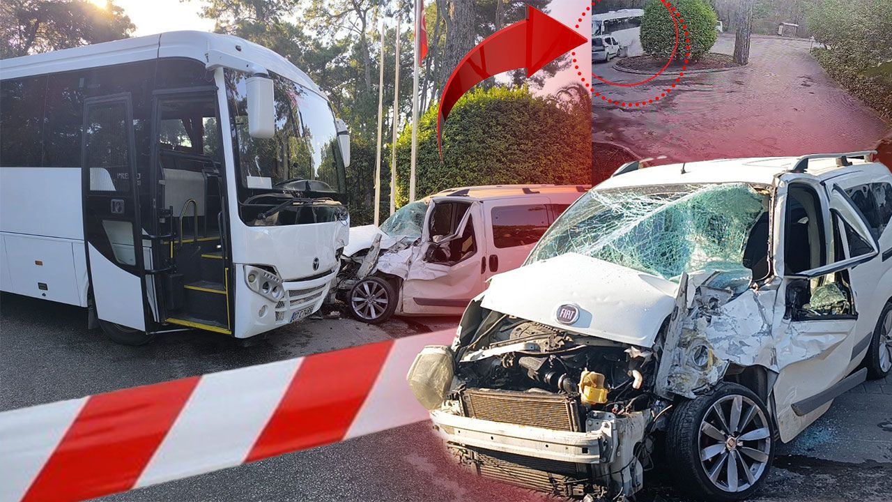 Antalya'nın Manavgat ilçesindeki oteller bölgesinde meydana gelen trafik kazasında servis otobüsü ile hafif ticari araç çarpıştı. Kazada hafif ticari araç sürücüsü yaralanırken, kaza anı çevredeki güvenlik kameralarınca saniye saniye kaydedildi.