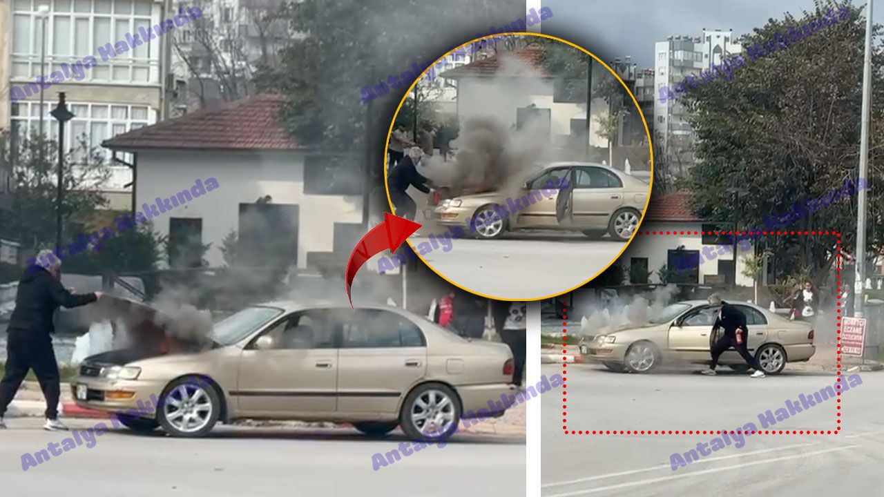 Edinilen bilgiye göre, Antalya'nın Muratpaşa ilçesine bağlı Fener Mahallesi'nde dün seyir halinde bulunan bir aracın motor kısmında, henüz belirlenemeyen bir nedenle yangın çıktı. Dumanları fark eden çevredeki vatandaşların müdahalesiyle yangının büyümesi engellenmeye çalışıldı. Durumun bildirilmesi üzerine olay yerine ekipler sevk edildi.