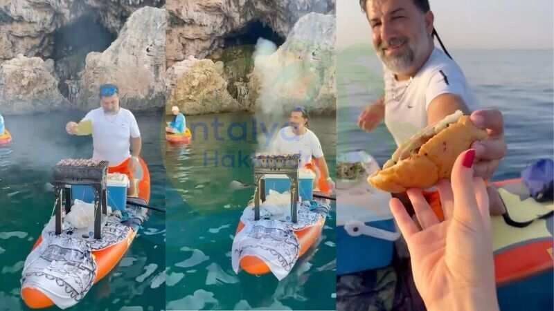 Antalya'nın Konyaaltı Sahili Beach Park’ta güneşli bir hafta sonunda sahildekiler alışılmadık bir manzarayla karşılaştı. Çoğu kişinin üzerinde ayakta bile zorlandığı SUP boardun üstüne çıkan Halil Yiğit, mangal kurarak ciğer pişirdi. Sahildekilerin şaşkın bakışları arasında denizin ortasında dumanı tüten mangal, kısa sürede ilgi odağı oldu.