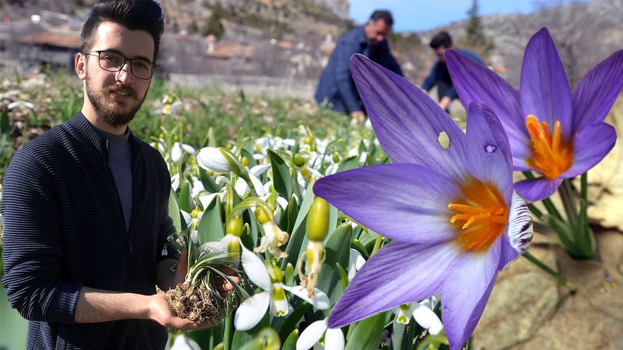 "2 milyon 500 bin tohumu yaklaşık 600 bin adet yumru soğandan elde ettik. Kardelenler sadece kökten yavru vermiyor. Çiçekler döküldükten sonra oluşan kozalakta 50 ile 100 arasında tohum oluşuyor. Alttaki yumrular ise büyüklüğüne göre 8 ile 20 arasında yavru veriyor. Buradaki amacımız doğanın talan edilmemesi ve türün doğada devamlılığının sağlanmasıdır.