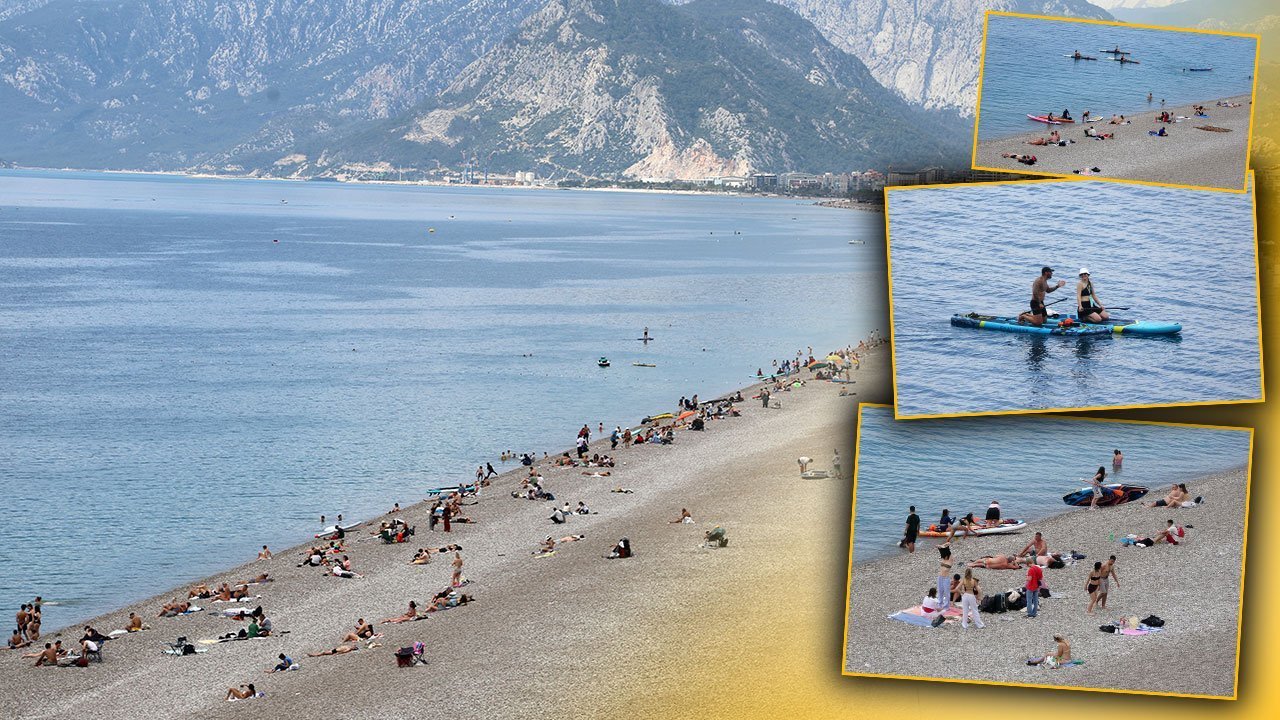 Antalya'da hava sıcaklıklarının artmasıyla birlikte sahilde yazı aratmayan görüntüler oluştu. Sabah erken saatlerde Konyaaltı Sahili'ne gelenler, Akdeniz'in mavi sularına girerek serinledi.