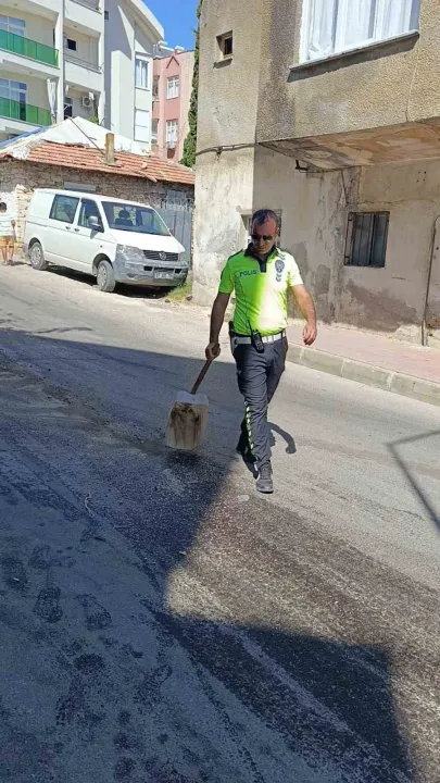 Güvenlik kamerasına saniye saniyesine yansıyan kazada yaralanan motorlu bisiklet sürücüsü 112 sağlık ekiplerinin olay yerindeki ilk müdahalesinin ardından ambulansla hastaneye kaldırıldı. Kaza ihbarı ile verilen adrese gelen trafik polisi meydana gelebilecek kazaların önüne geçmek için yolun kayganlaşan bölümüne toprak serperek önlem aldı. Kazada yaralanan motorlu bisiklet sürücüsünün sürücü belgesinin olmadığı belirlenirken Mustafa U.’ya 18 bin 677 TL para cezası uygulandı.