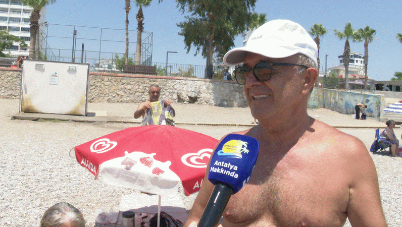 "İnsanlar çevreye karşı olumsuz davranıyorlar. Şimdi şu anda sahildeyiz. Bakın elimde çöplerim. Çöplerimi toplayıp giderken çöp bidonuna atacağız. Sigara içiliyor. Özellikle gece sahile gelen gençler mi diyelim, insanlar mı diyelim? Eee bira şişeleri, su şişeleri, sigara izmaritleri, özellikle de çekirdekler falan atılıyor. Burada yabancı özellikle Ruslar at, Ukraynalı mı, Rusyalı mı bilemiyorum. Onları izliyorum. O kadar titiz davranıyorlar ki. Adamlar özellikle demin eşime de gösterdim. Bir bayan orada gazoz kapaklarını. İşte şu kapakları topladı götürdü. Böyle yaptım a da teşekkür etti. Yani bura bizim bakın da hava çok sıcak kırk dereceleri aştı. Serinliyoruz, rahatlıyoruz. Ama burayı temiz tutmak lazım. Yani herkes evinin önünü süpürürse çevrede temiz olacak. Yani gerçekten Dünya'nın en güzel şehri. Kim demiş? Atatürk demiş" diye konuştu.