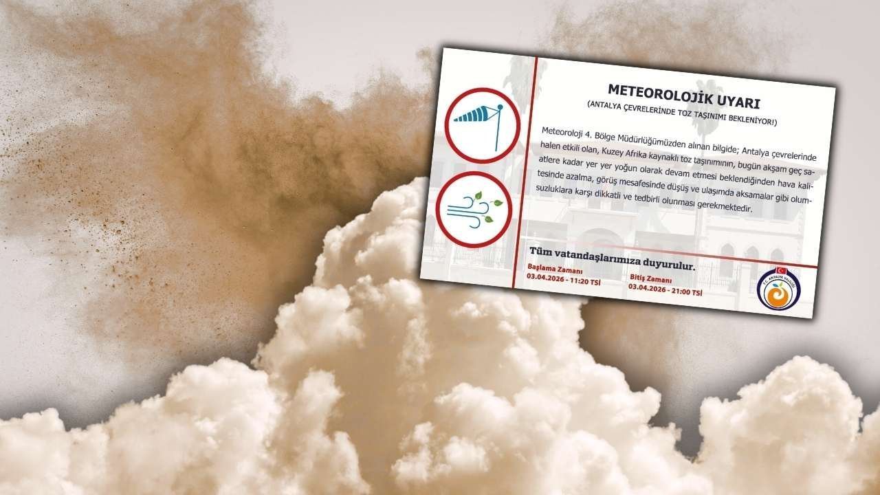 Meteoroloji 4. Bölge Müdürlüğü’nden alınan bilgilere göre, Antalya ve çevresinde etkisini sürdüren toz taşınımının gün boyunca devam edeceği bildirildi. Kuzey Afrika üzerinden gelen toz bulutlarının özellikle akşam saatlerine kadar yer yer yoğun şekilde hissedileceği ifade edildi. Yetkililer, bu durumun hava kalitesinde belirgin bir düşüşe yol açabileceğini belirterek, özellikle hassas grupların dikkatli olması gerektiğini vurguladı.