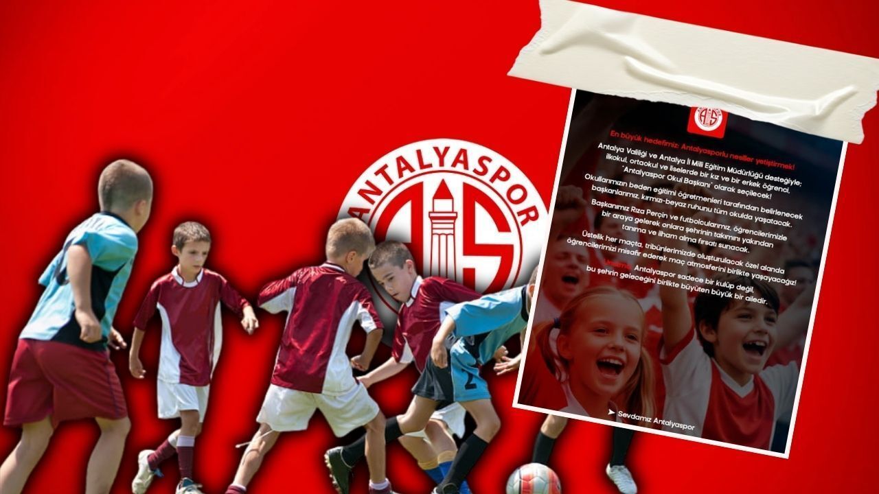 Antalyaspor, Antalya Valiliği ve İl Milli Eğitim Müdürlüğü iş birliğiyle hayata geçirdiği yeni projeyle geleceğin Antalyasporlularını yetiştirmeyi hedefliyor. Proje kapsamında ilkokul, ortaokul ve liselerde bir kız ve bir erkek öğrenci, “Antalyaspor Okul Başkanı” olarak seçilecek. Beden eğitimi öğretmenleri tarafından belirlenecek olan okul başkanları, kırmızı-beyaz kulübün ruhunu okullarında yaşatacak. Antalyaspor Başkanı Rıza Perçin ve futbolcular da öğrencilerle bir araya gelerek, şehir takımıyla bağ kurmalarını sağlayacak.