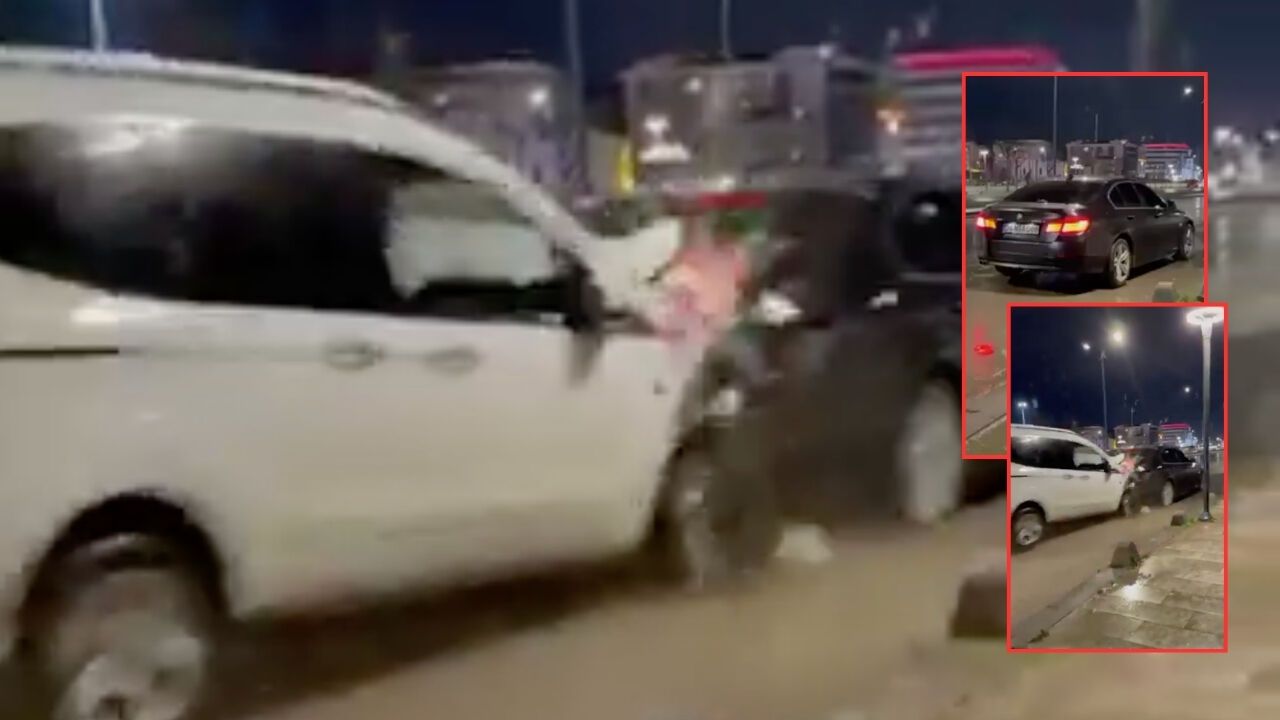 Yol kenarında duran aracını görüntülemek isteyen bir vatandaşın aracına başka bir araç son hızla çarptı. O anlar cep telefonu kamerasına anbean yansıdı. Görüntülerde, sahibinin videoya aldığı otomobile, hızla gelen bir hafif ticari aracın kontrolden çıkarak çarptığı görüldü. Ticari aracın yolun sağında park halinde bulunan araca arkadan çarpmasının ardından her iki araçta da büyük çapta maddi hasar meydana geldi.