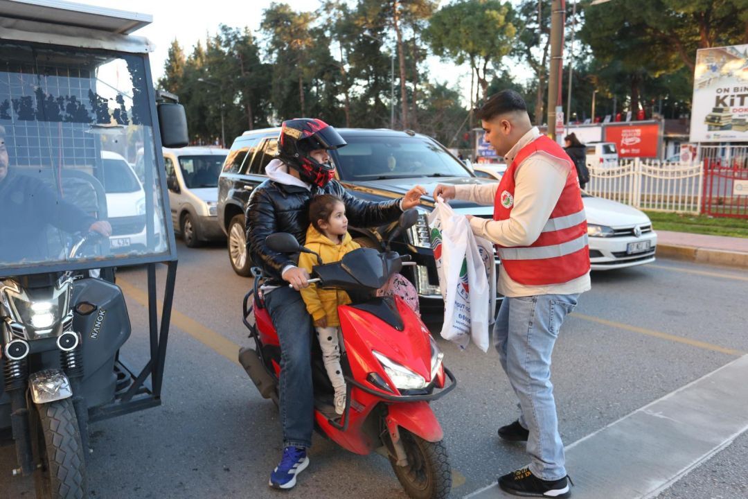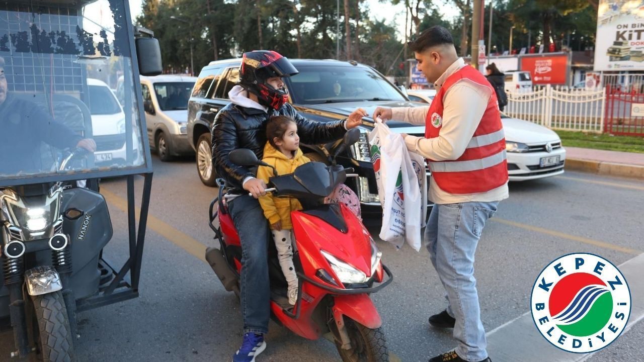 On bir ayın sultanı Ramazan, birlik, beraberlik ve paylaşma ruhuyla Kepez'de yaşanıyor. Ramazan’ın ilk günü, binlerce kişiyi Düdenbaşı Mahallesi’nde kurulan iftar sofralarında ağarlayan Kepez Belediyesi evlerine yetişemeyenler için de iftariyelik kumanya dağıtımı gerçekleştirdi. Namık Kemal Bulvarı’nda Dokumapark önünde kırmızı ışıkta bekleyen sürücülere ve yolculara, “Hayırlı Ramazanlar, afiyet olsun” dilekleriyle kumanya ikram edildi.