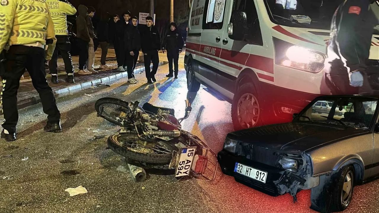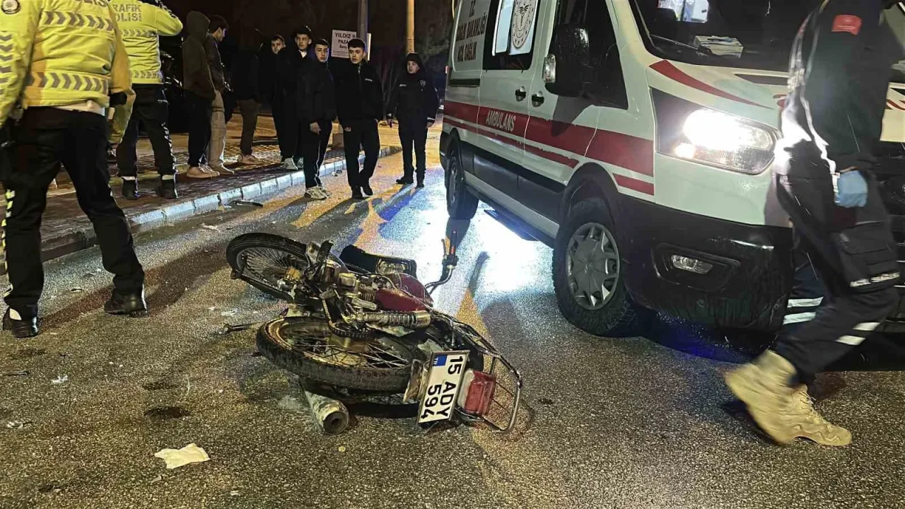 Kaza, dün akşam saatlerinde Burdur’da Armağan İlgi Bulvarı üzerinde meydana geldi. Edinilen bilgilere göre, Sadık Enes K. idaresindeki 32 HT 912 plakalı TOFAŞ marka otomobil, kavşaktan yan yola dönmeye çalıştığı sırada karşı şeritten gelen Halil Emre Ü. (16) yönetimindeki 15 ADY 594 plakalı motosikletle çarpıştı. Çarpışmanın etkisiyle motosiklet sürücüsü Halil Emre Ü. ile motosiklette yolcu olarak bulunan Hasan Cemal T. (16) metrelerce sürüklendi.