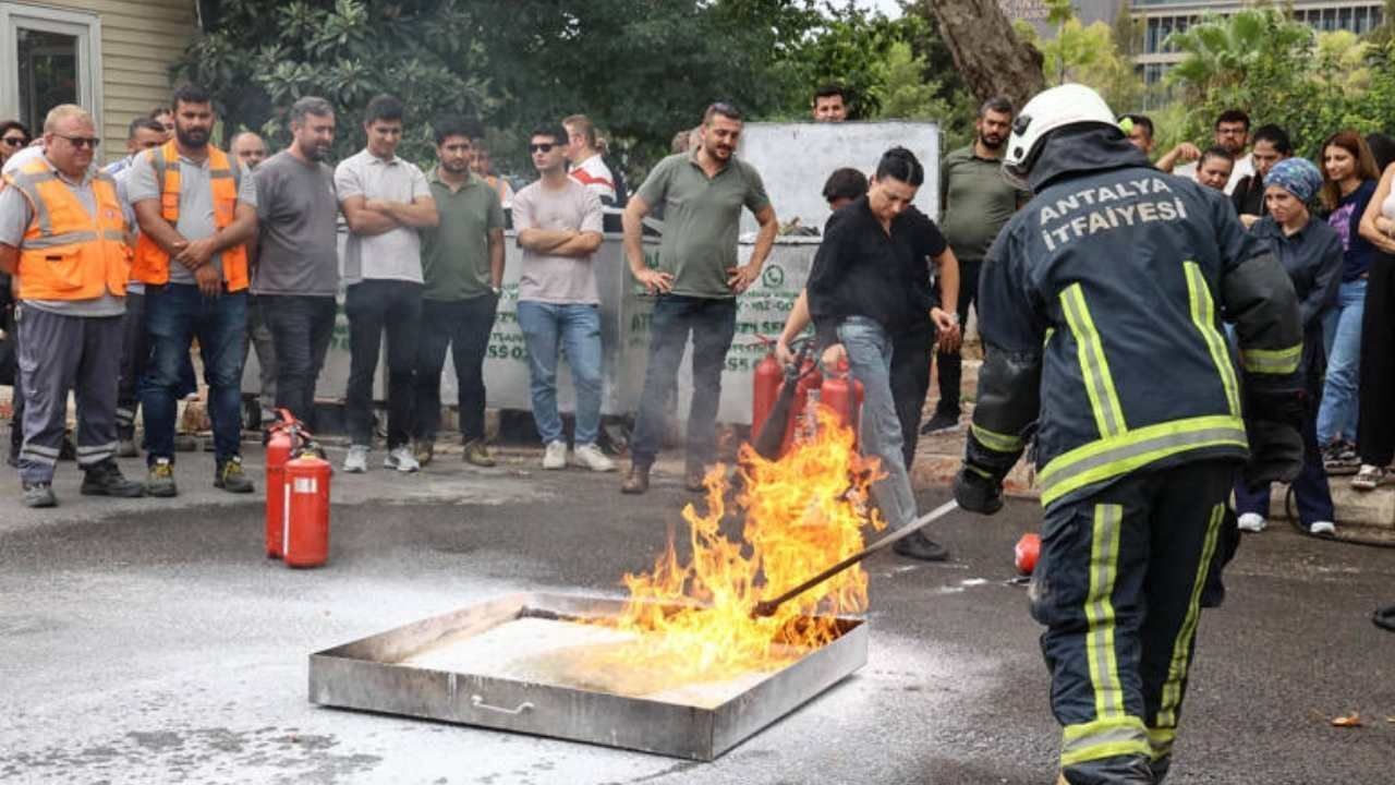 Eğitimin ardından İtfaiye Daire Başkanlığı’nda uygulamalı tatbikat gerçekleştirildi. Personel, yangına doğru müdahale yöntemlerini birebir deneyimleme fırsatı buldu. Söndürme tüplerinin çeşitleri, doğru kullanım şekilleri ve dikkat edilmesi gereken noktalar uygulamalı olarak gösterildi.