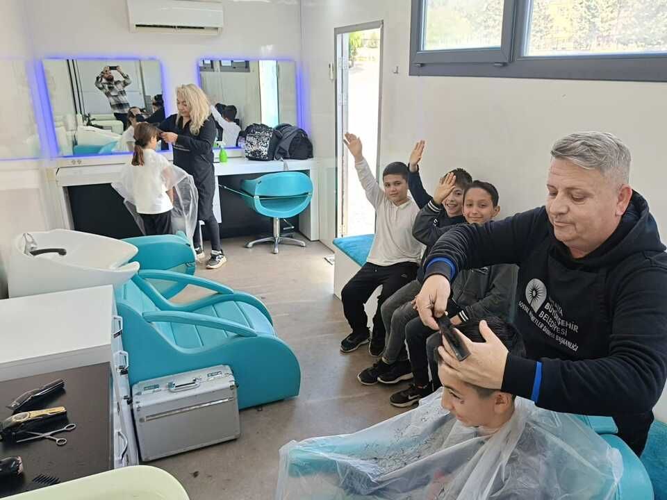 Bu kapsamda Mobil Kuaför Tırı, bu kez Elmalı’nın kırsal mahallelerinde bulunan okullarda eğitim gören öğrencilere hizmet verdi. Üç gün boyunca Elmalı’da bulunan Mobil Kuaför; ilk gün Özdemir Mahallesi’nde yer alan Özdemir İlk ve Ortaokulunda, ikinci gün Eskihisar Mahallesi’ndeki Şehit Nuri Çavdar İlk ve Ortaokulunda, üçüncü gün ise Zümrütova Mahallesi’nde bulunan Zümrütova İlkokulunda eğitim gören öğrencilere ücretsiz kuaförlük hizmeti sundu. Öğrenciler mobil kuaföre yoğun ilgi gösterdi.