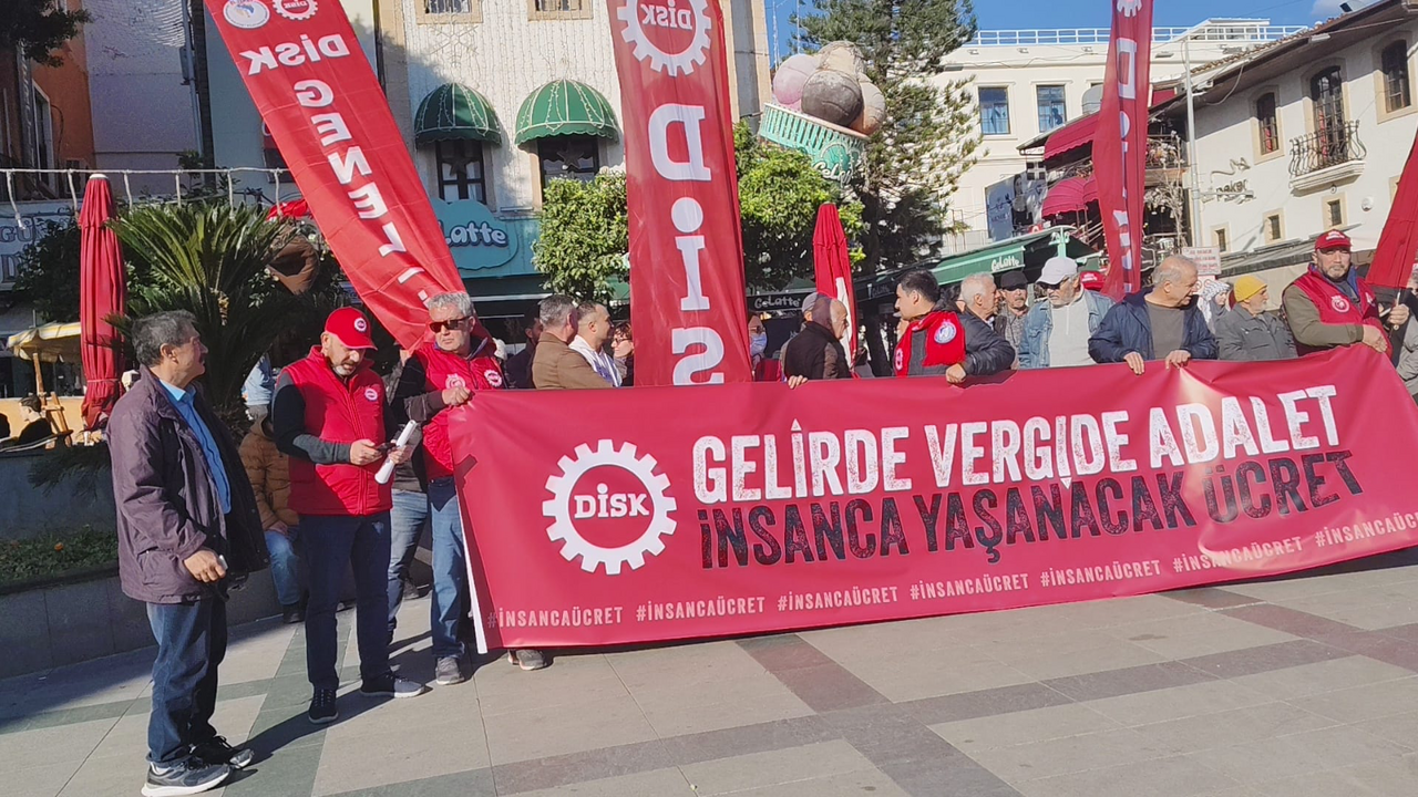 Devrimci İşçi Sendikaları Konfederasyonu (DİSK), 2026 yılında uygulanacak asgari ücretin yüzde 27 artışla 28.075 TL olarak açıklanmasına Antalya'dan sert tepki gösterdi. Attalos Meydan'ında gerçekleştirilen basın açıklamasında konuşan DİSK Akdeniz Bölge Temsilcisi Vedat Küçük, açlık sınırının bile altında kalan asgari ücretin kabul edilemez olduğu vurgulandı.