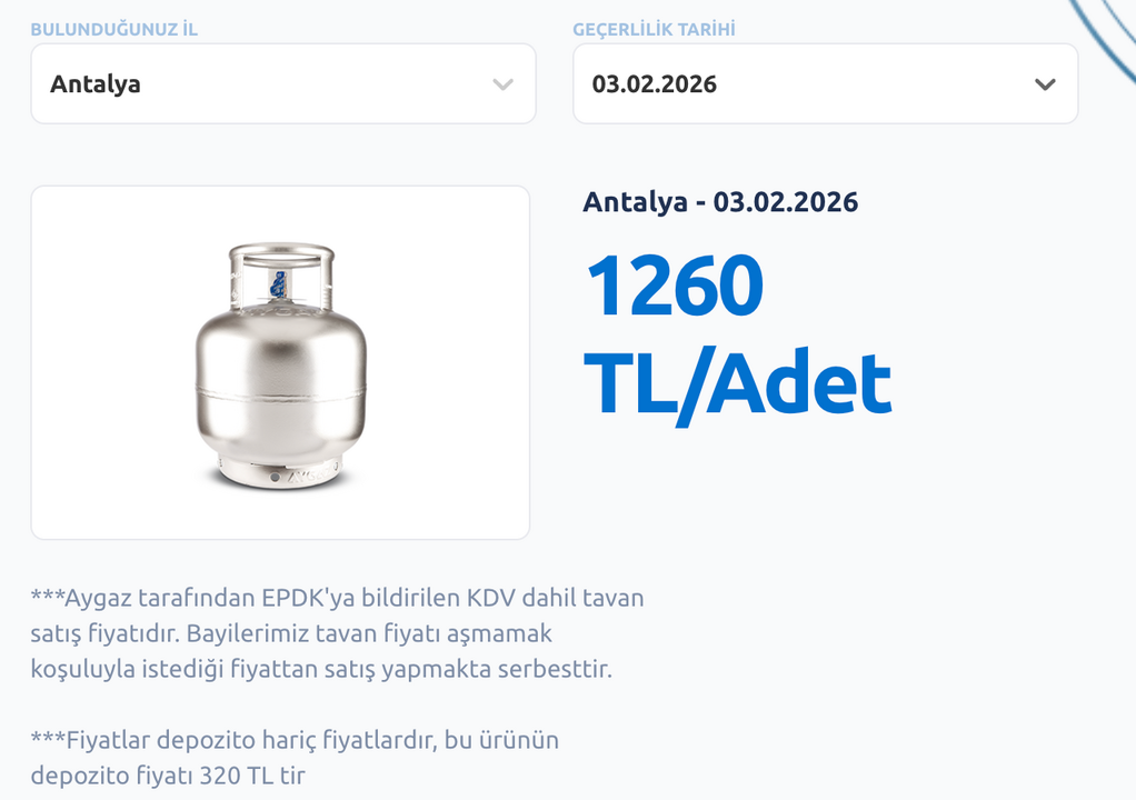 Antalya'da 12 kg mutfak tüpü 1260 TL oldu.