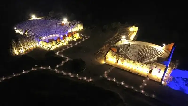Antalya’nın Kaş ilçesinde yer alan Patara Antik Kenti, ışıklandırma çalışmalarıyla gece müzeciliği uygulamasına açılarak hem tarih hem de doğa tutkunlarının ilgisini çekiyor. Kültür ve Turizm Bakanlığı’nın “Geleceğe Miras Projesi” kapsamında kentte yürütülen 12 aylık kazı çalışmalarıyla geçmişin izleri gün yüzüne çıkarılırken, ziyaretçiler akşam saatlerinde de antik kenti gezebiliyor.