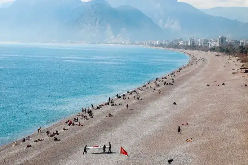 Antalya'nın en bilinen ve en büyük plajlarından biri olan Konyaaltı Plajı, yazın olduğu kadar kışın da denize girmek isteyenlerin tercihi. Kış aylarında deniz suyu sıcaklığı 18-20°C civarında olabiliyor, bu da serin havada bile denizin tadını çıkarmak isteyenler için uygun bir seçenek oluşturuyor.