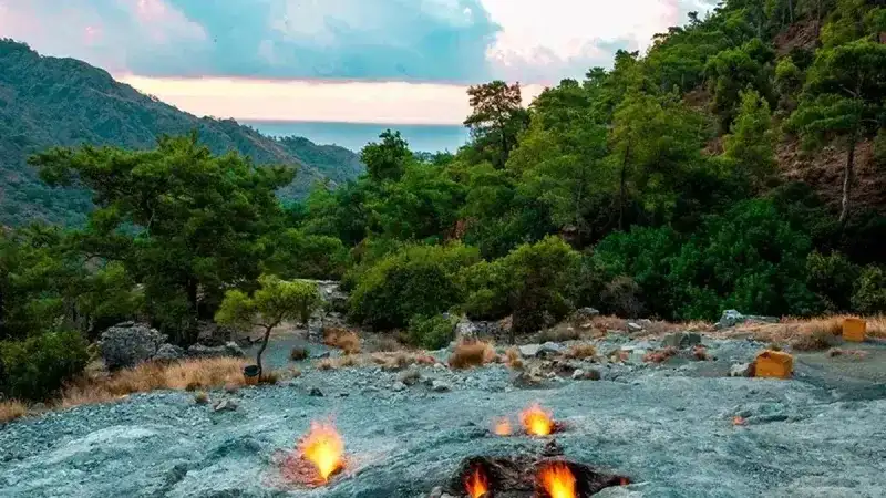 Olimpos bölgesinde yer alan Yanartaş, volkanik hareketlerin sonucu olarak kayaçların içinden süzülen doğalgazın yanmasıyla ünlü. Binlerce yıldır hiç sönmeden yanan bu taşlar, bölgenin mitolojik ve jeolojik değerini gözler önüne seriyor.